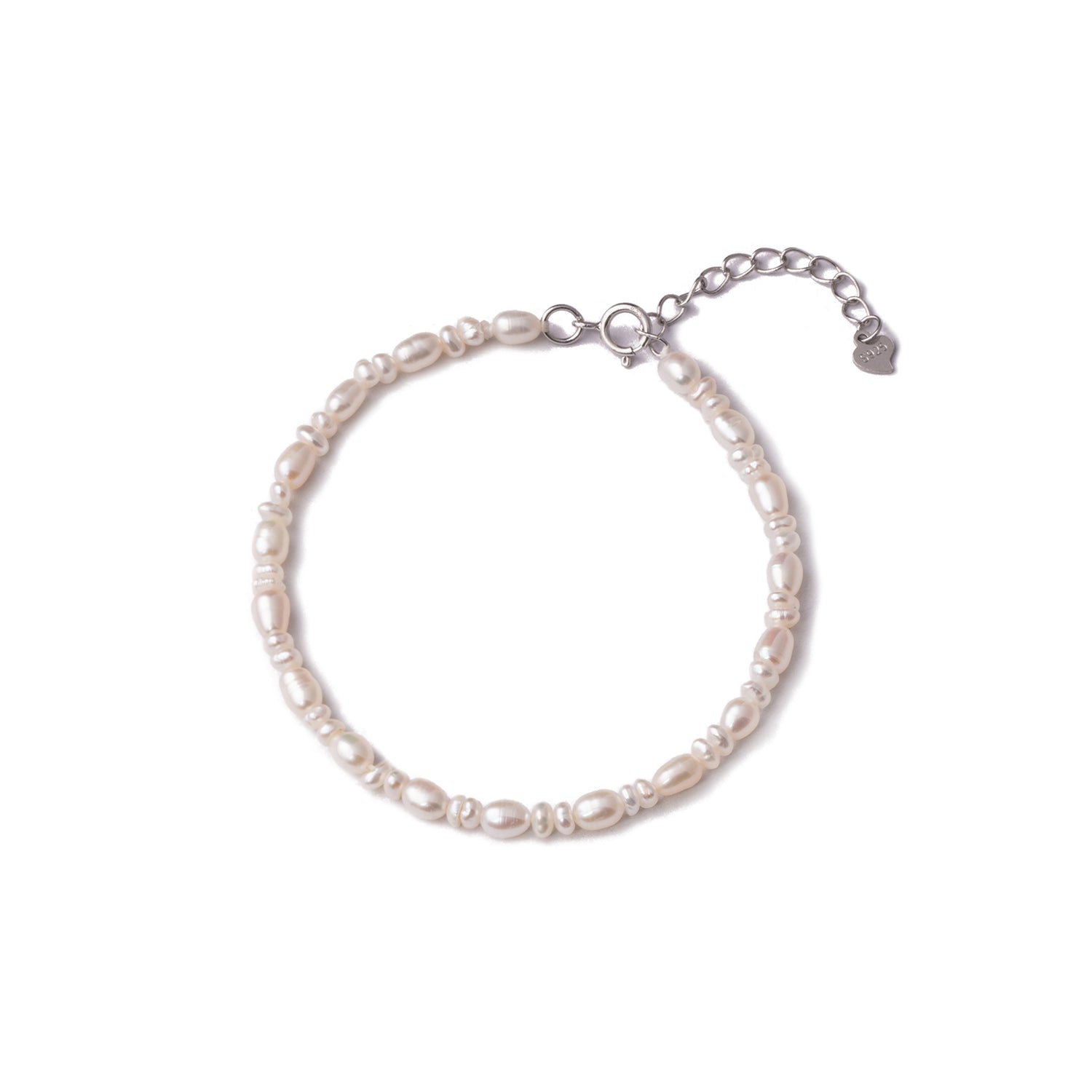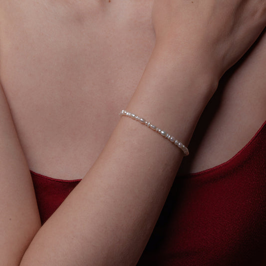3mm Aquamarine with Sterling Sliver Beaded Bracelet-March