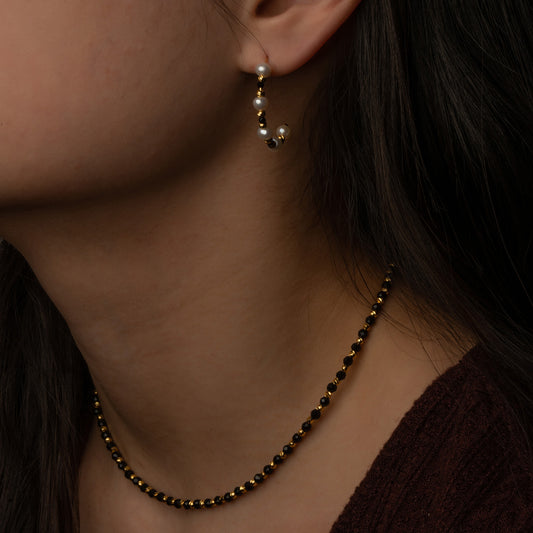 Sigma Hoop Earrings(Black Tourmaline and Pearl)