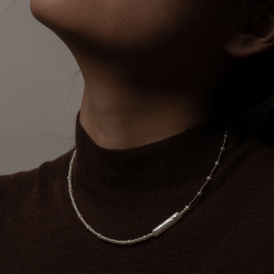 2.5-3.0mm Pearl and Sterling Sliver Beaded Necklace