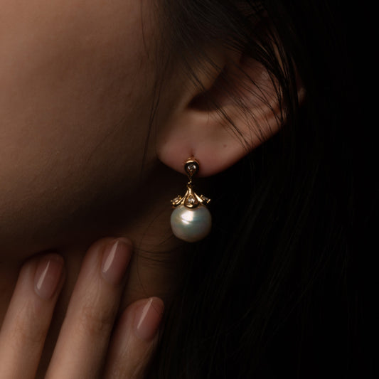 Opéra de Paris- Diamond ginkgo pearl stud Earrings