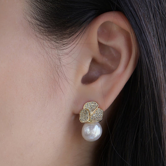 Petal Keshi Pearl Stud Earrings