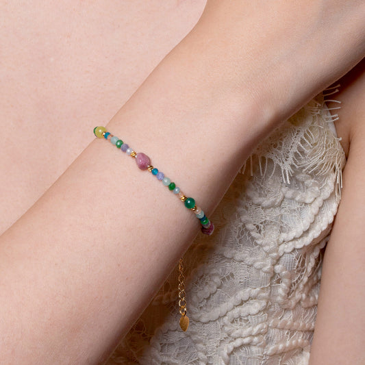 Pink Tourmaline and Mixed Nature Stone Bracelet