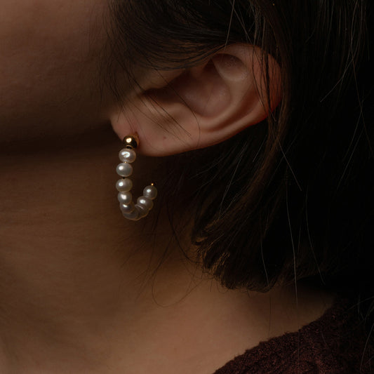 Golden Beaded and Pearl Hoop Earrings( 4.5-5.0mm Freshwater Pearl)
