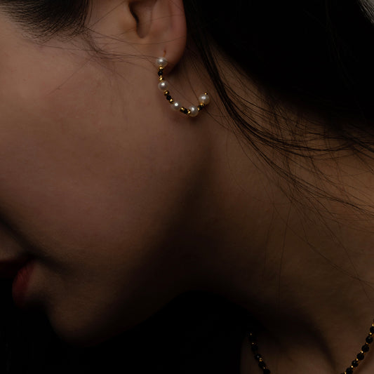 Sigma Hoop Earrings(Black Tourmaline and Pearl)