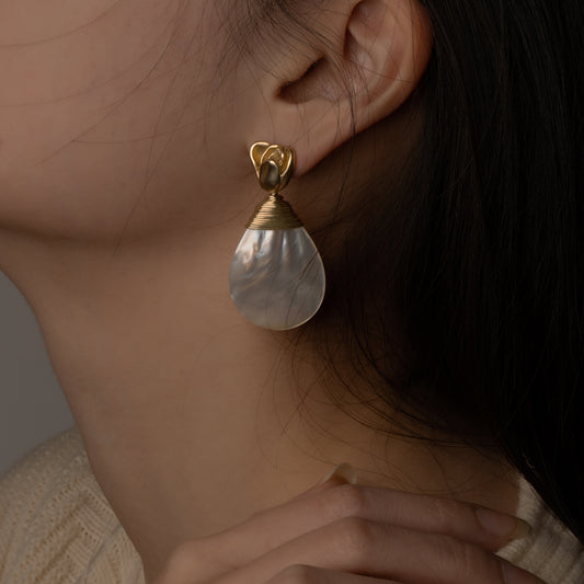 Hand Wire Wrapping Tulip Drop Earrings (Mother of Pearl)