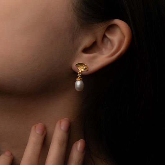 Theodora-Golden Ginkgo Pearl Stud Earrings